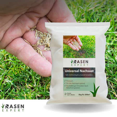 Due to its rapid germination, German ryegrass is also ideal for overseeding. That is why our PREMIUM Express overseeding and our PREMIUM Universal overseeding also contain 60 and 55% German ryegrass respectively.