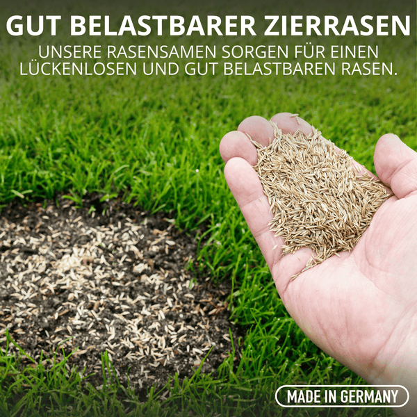 Prenez soin de votre pelouse en la tondant régulièrement et en la fertilisant si nécessaire. Cela garantit qu'il reste durablement sain, vert et dense.